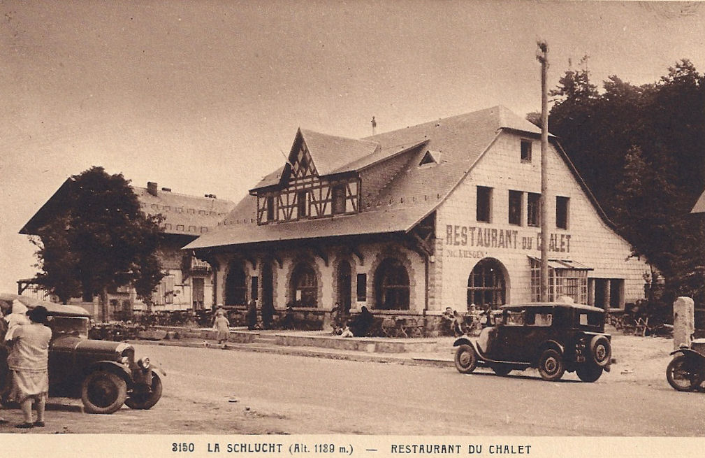 Approaching the summit of Col de la Schlucht (1139m) from the Munster valley, one of the first signs of habitation is the Hotel du Chalet. For decades travellers have refreshed themselves and relaxed here: cyclists and walkers –