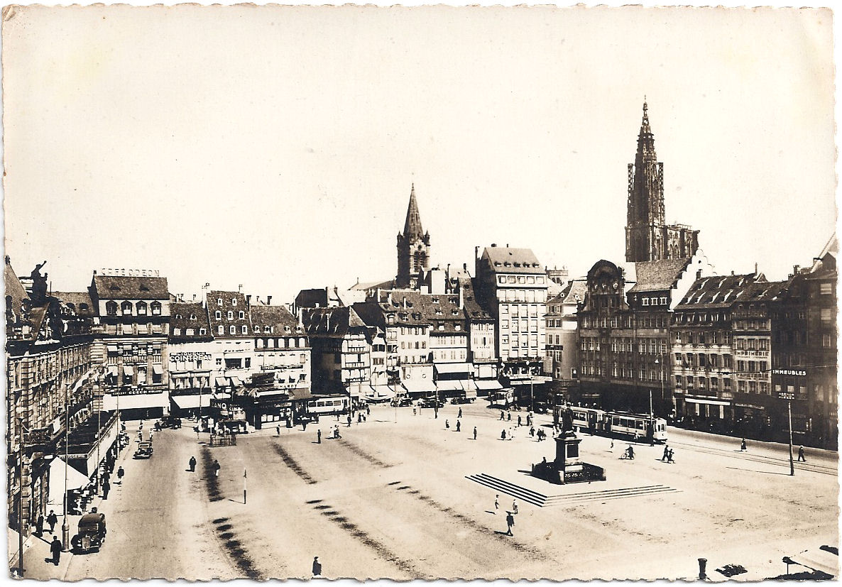 My photograph was taken looking into the former German territory from the former French side and the contemporary postcard shows the same view from the opposite side of the road. The German frontier post (with the eagle) is approximately where the départementale sign is now. The photographer was probably standing by the douaniers’ hut.
