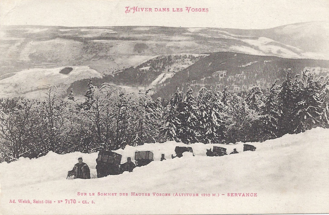 The war on the Vosges front did not stop on Christmas Day, neither for truces nor football games. Personal accounts testify to French units in the region of Hartmannswillerkopf (le Vieil Armand) beginning to relax on Christmas Eve, sharing food in the homes of local people, singing carols, even planning to attend a local midnight mass and temporarily forgetting war. [Note, below]