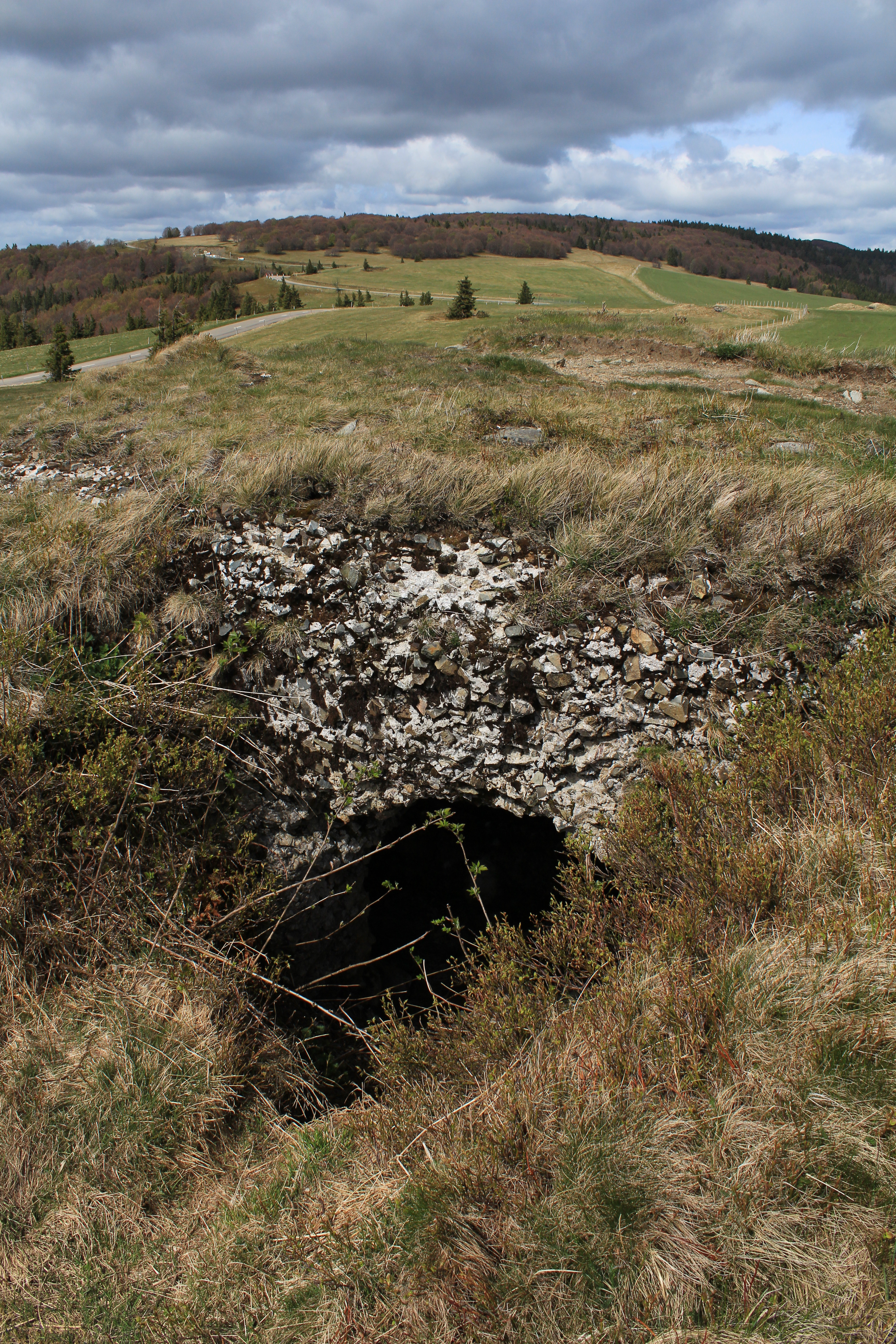 Le Markstein (1183 m) – vestiges of the Great War can easily be seen from the Route des Crêtes, established by Joffre for the efficient movement of troops and supplies.  My photo shows how close these vestiges are to the Route des Crêtes (they are best seen in spring before the vegetation has grown back).